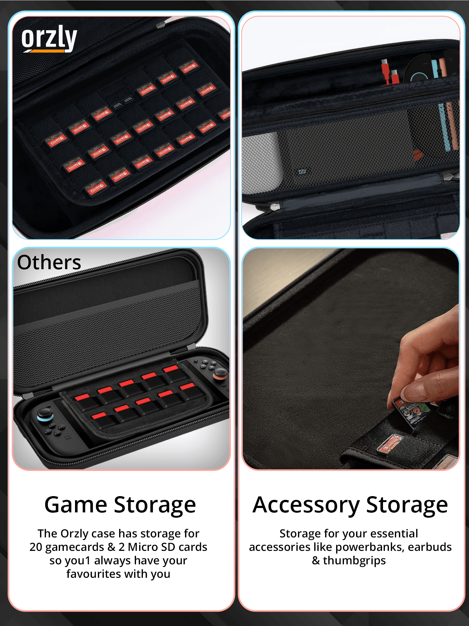 Keep your Nintendo Switch 2 safe wherever you go. The Orzly Carry Case features a hard outer shell for impact protection and a soft interior lining to prevent scratches. It includes a dedicated section for your console, plus room for accessories and up to 12 game cards.