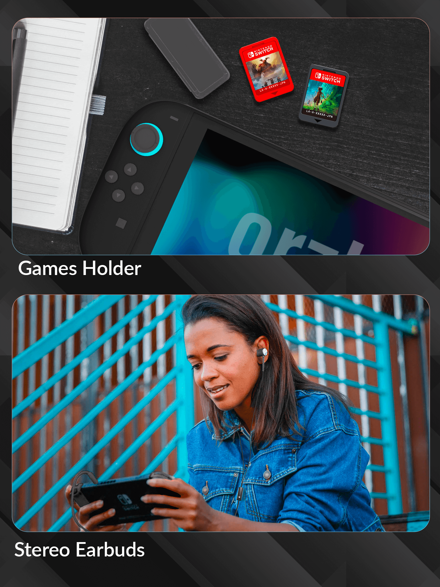 Immerse yourself in every sound effect and soundtrack with the included Orzly wired earbuds. They deliver crisp, lag-free audio and a reliable connection, perfect for gaming on the go or at home.